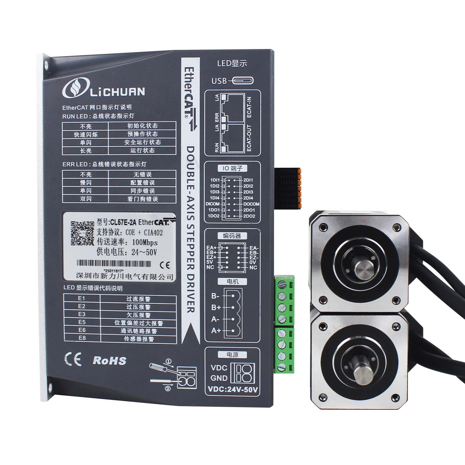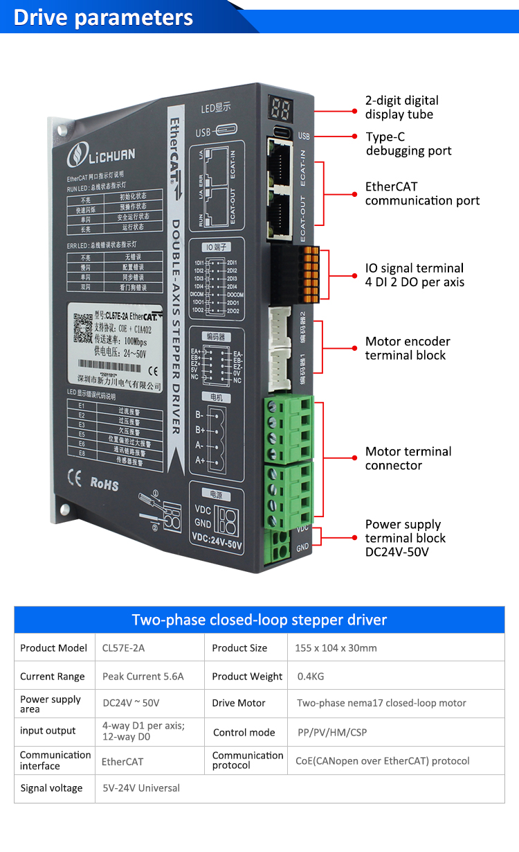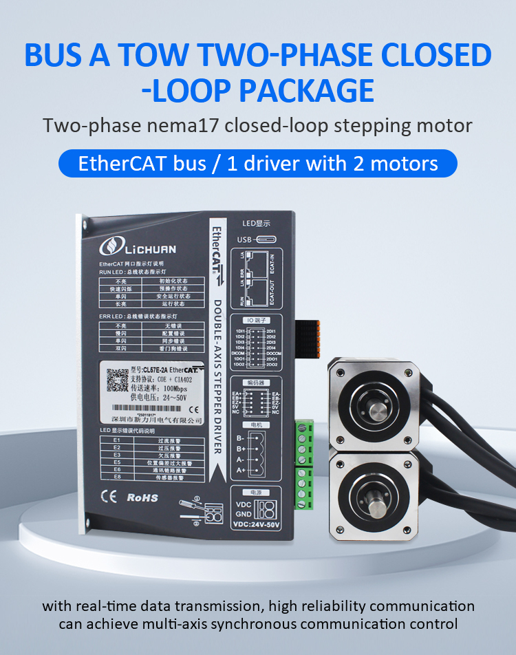 Комплет за двигатели на чекорен мотор со затворена јамка EtherCAT 2Phase Nema24 со 4 оски DCНови производи EtherCAT 2Phase Nema17 Комплет за двигатели на мотор со затворена јамка DC со 2 оски произведен во Кина со CE/ROHS од LICHUAN®. Нашата фабрика е познат EtherCAT 2фазен Nema17 2-оски DC затворена јамка комплет за двигатели на чекори за мотори и добавувачи во Кина. Нашиот производ е висококвалитетен/издржлив/стабилна работа и евтина цена. И ние обезбедуваме приспособени услуги.