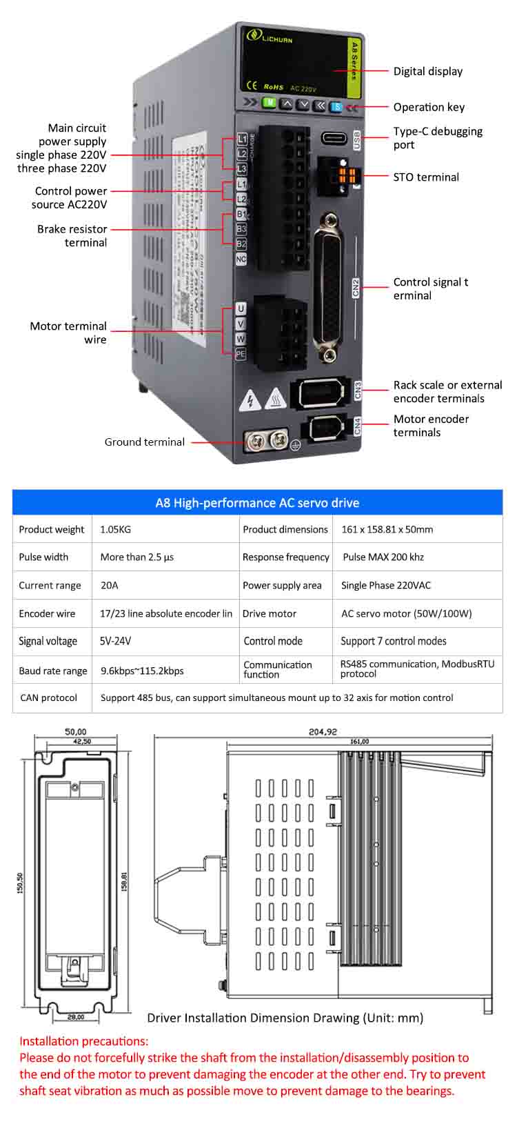 Дизајниран за долгорочна доверливост,Комплет за серво мотори со висока прецизност на Lichuan A8 STO ABZ ACе нашироко препознатлив по својата силна компатибилност, непречено функционирање и супериорен однос на трошоците и перформансите.