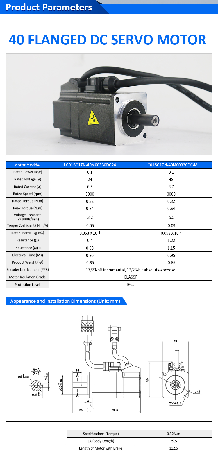 Pulse/RS485/CANopen/EtherCAT 80 FLANGED 750W Комплет серво мотори со низок напон DC