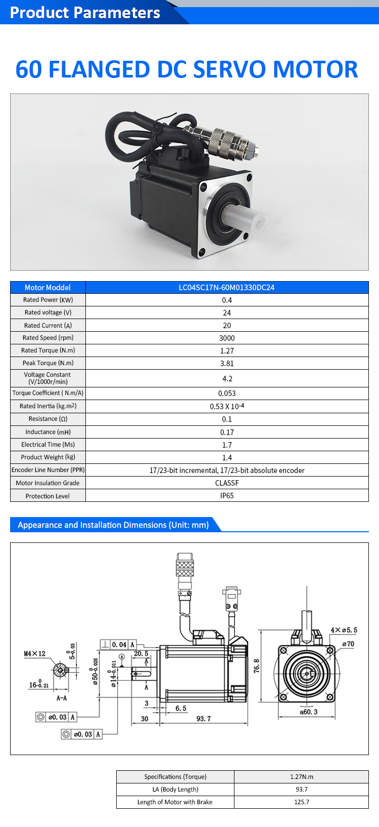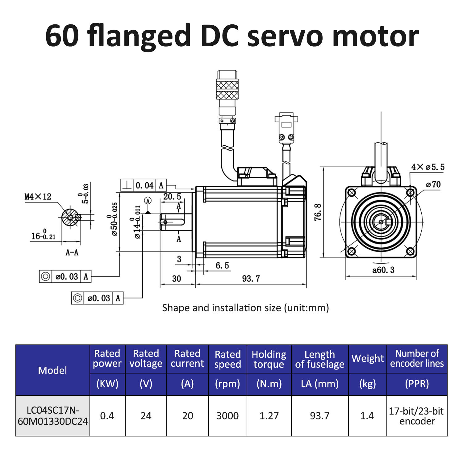 Pulse/RS485/CANopen/EtherCAT 60 FLANGED 200W/400W/600W Комплет серво-мотори со низок напон DC